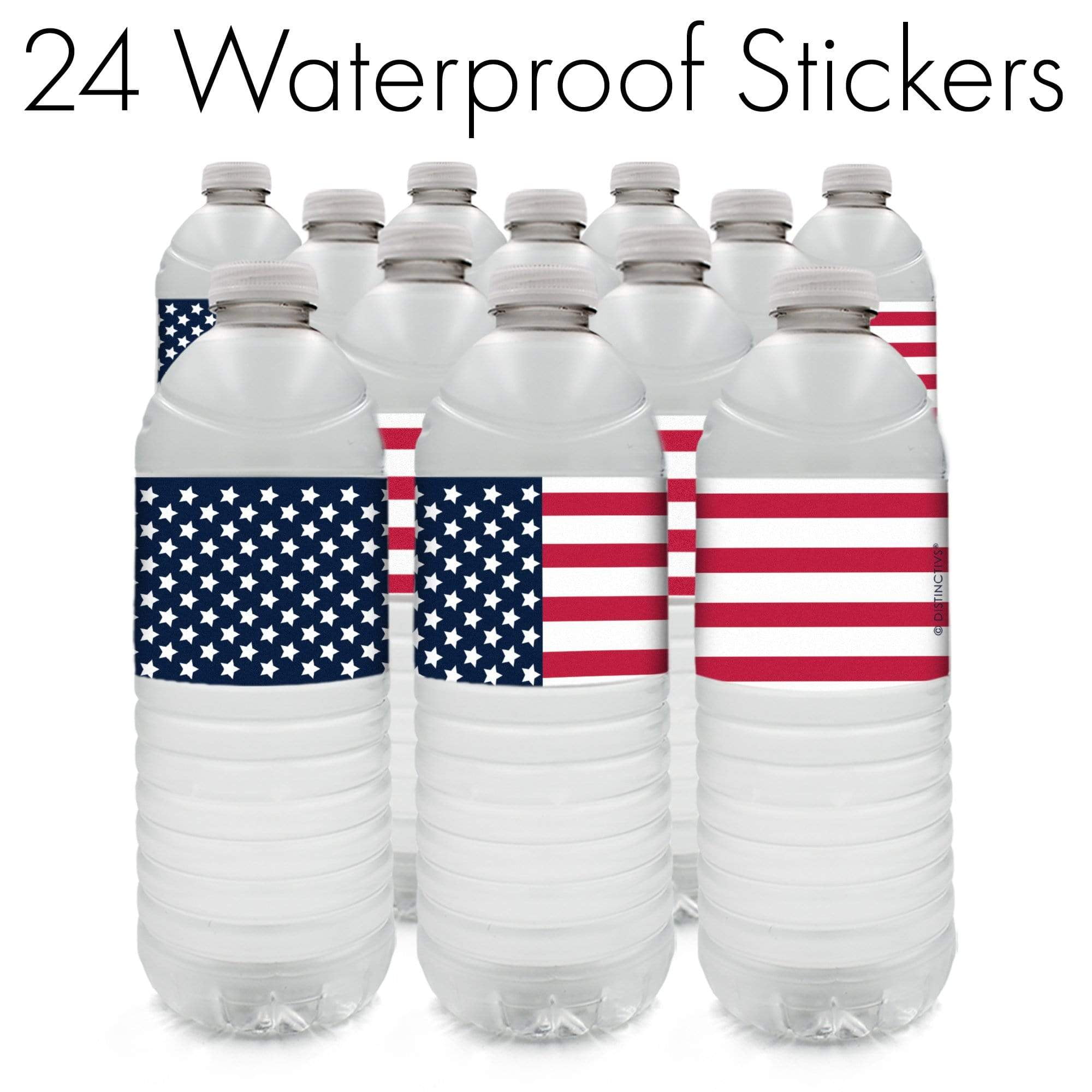 Personalized Patriotic Red White and Blue Water Bottle Labels - Custom Waterproof Wrappers - 24 Count
